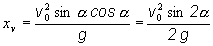 X-ovú súradnicu vrcholu paraboly xv určíme, ak do rovnice pre dráhu v smere osi x dosadíme čas výstupu tv.